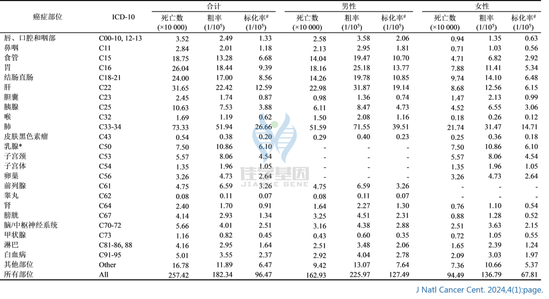 【贝斯特全球奢华基因检测】国家癌症中心发布:2024年中国所面临的癌症死亡或患病风险